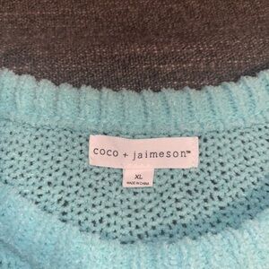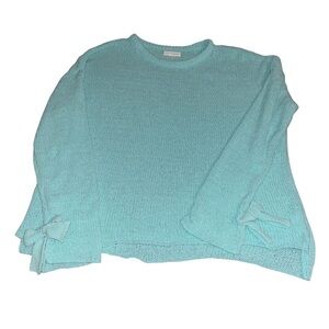 Coco + Jaimeson Aqua Knit Sweater XL Bow Sleeve Lightweight Pullover Cozy