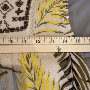 Coco + Jaimeson Beaded Gauzy Tropical Short Romper Spaghetti Straps Size Small. Excellent condition. See photos for details and unstretched measurements. Shop my closet and bundle multiple items for discounts and one shipping fee! tropical palm leaf print, bronze beads on front, lined, side zipper, cruise wear, beach, pool, summer, spring, fall, boho, island, vacation, lightweight and flowy