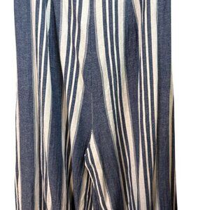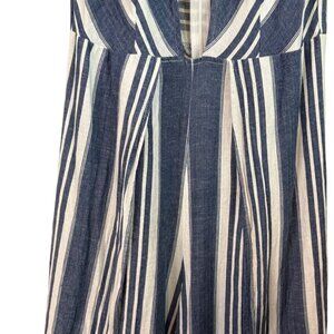 Coco + Jaimeson Linen Blend Tie Striped Blue Open Leg Jumpsuit Size Medium