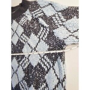 Coco Jaimeson Medium Womens Sweater Chunky Argyle Blue Cozy