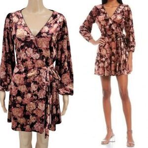 Coco + Jaimeson Surplice V-Neck 3/4 Sleeve Floral Velvet Faux-Wrap Mini Dress L