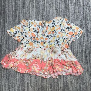 Coco + Jaimeson Womens Size Small Peplum Top Floral Print Flowy Cream Orange NWT