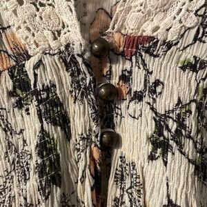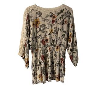 Coco & Jamieson crinkle rayon floral with lace layering blouse M. Lace trim