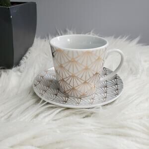 Coco + Lola Geometric Pattern Coffee Tea Mug & Saucer Serveware Set