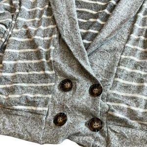 Coco & Main Gray Striped Button Accent Shawl Collar Cardigan L