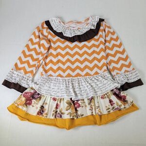 Adorable fall-themed tunic with ruffles galore in contrasting prints to celebrate the season!