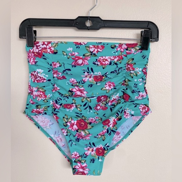 Coco Pear High waisted Teal and pink Floral Swim Bottoms size small