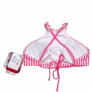 Brand new with tags Coco Rave Tropi Glow Bright Neon Pink Striped Flamingo High Neck Bikini Top XS / S or 30C / 32C. Removable pads. Cross cross straps in the back. No stains or holes. Please ask all questions before purchasing.