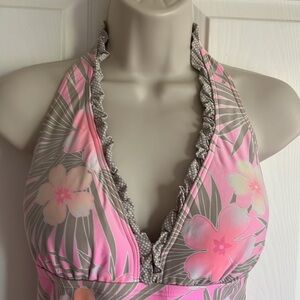 Good condition pink and beige flowers. Soft material.34 inches under cup size .17 inches pit to pit