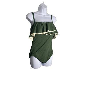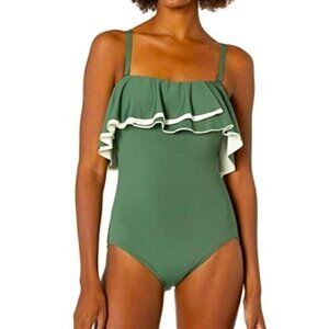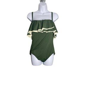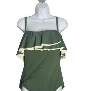 Coco Reef Agape Womens Ruffle Bandeau Olive Swimsuit One Piece Size 12/36C