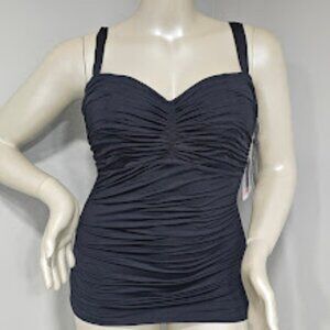 Coco Reef Charisma Tie-Back Ruched Pleated Tankini Top Black
