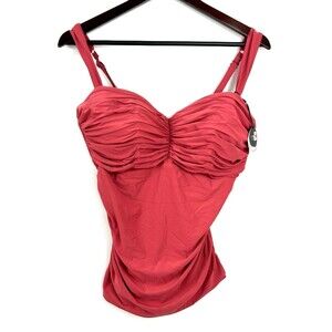 Coco Reef Charisma Women Size 36DD Coral Tankini Top Tie Back Ruched Pleated