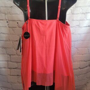 Breezy and light, the Coco Reef Current Bra Sized Mesh Layer Underwire Tankini Top offers fashionable, full-coverage in bold colors. The mesh overlay creates a cool, layered look for a fresh take on the tankini silhouette. Underwire and adjustable straps offer a shapely, customized fit, so you can hit the beach in comfortable and stylish swimwear.