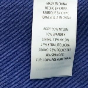 Color/pattern: royal blue Design details: Crossover One Piece Swimsuit features a colorblocking blend of complimentary colors paired with underwire, removable soft cups, adjustable side tie and straps. Shapemaker lining smooths your curves 90% nylon 10% spandex Shapemaker lining 73% nylon, 27% lycra Hand wash Imported