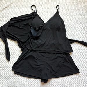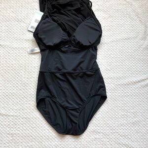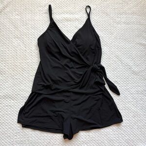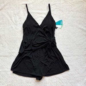 Coco Reef Contours Chroma One Piece Swimsuit Romper 8 Black Wrap Smoothing NWT