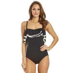 Coco Reef Contours Ruffled Strapless Tummy Control 1 Piece Swimsuit Black 12 36C