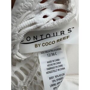 Keywords: Coco Reef swimsuit, white one piece swimsuit, crochet swimsuit, shaping swimsuit, contours swimsuit, size 12 swimsuit, swimwear, beachwear, poolside fashion, designer swimsuit, adjustable strap swimsuit, new with tags, NWT