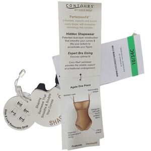 Hidden wireless cups. Lightly padded. Can be worn halter style or bandeau with removable straps. PerfectionFit technology smoothes and shapes for light control.
