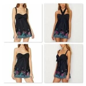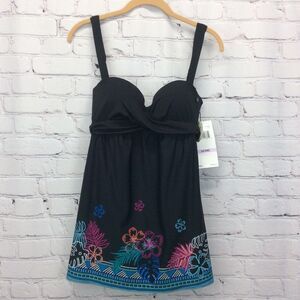 Black/Floral Swim Dress Underwire 5 Way Top
