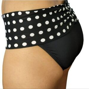Coco Reef Polka Dot Rollover Bikini Bottom Black And White Swimwear Size S