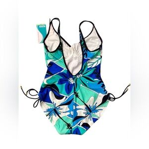 Update your swim look with this vibrant, printed side-tie one-piece suit from Coco Reef.