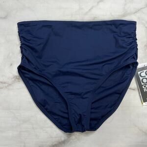 Coco Reef Shirred High Waist Bikini Bottom Navy Blue Fold Over Size L New
