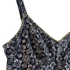 Coco Reef Swim Top 40D Jacquard Ikkat Black Gray Gold Metallic Stitching Cami