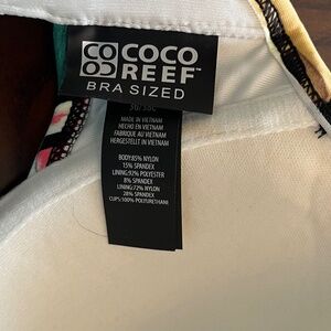 Vibrant Coco Reef bikini top with tropical floral design. Features adjustable straps and supportive fit.