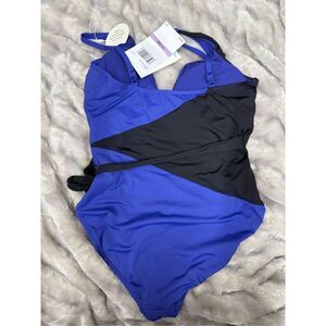Coco Reef Women's Contours Colorblocked Surplice Tummy-Control One-Piece Swimsuit - Blue size 14
