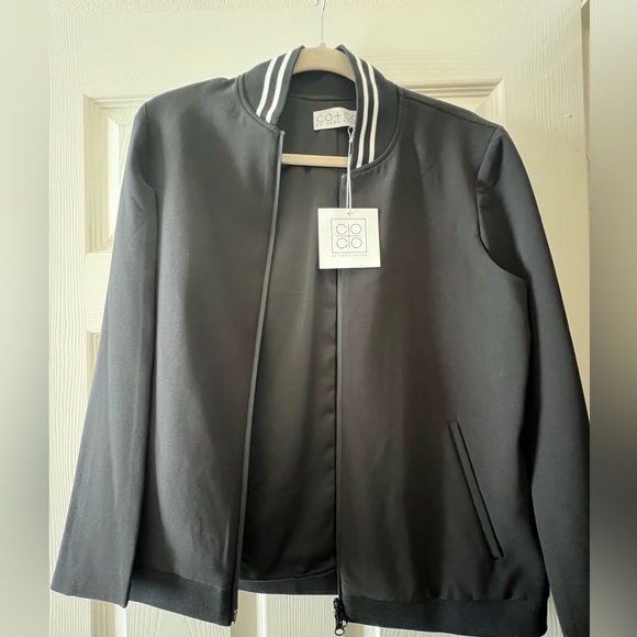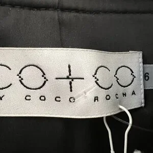 Black cape-style jacket with slits for the arms, worn over a dark outfit, creating a chic and modern layered look.