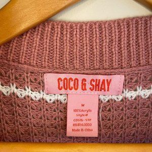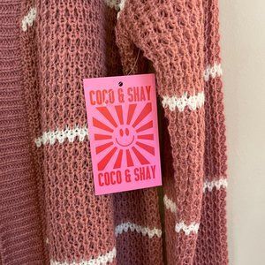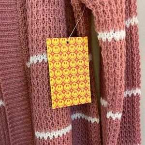 Coco & Shay Open Front Pink And White Knit Cardigan M
