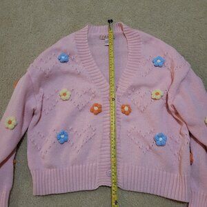 Coco & Shay Women’s Size Large Pink ButtoneUp Knit Cardigan Barbiecore Hippi 70s