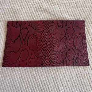 Coco & Tres Clutch Womens Envelope Wallet Burgundy Faux Snakeskin Pattern Purse Bag