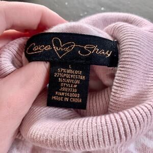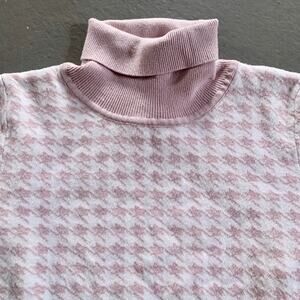 Coco and Shay Houndstooth Pink White Turtleneck Sweater Cut Out Back XS