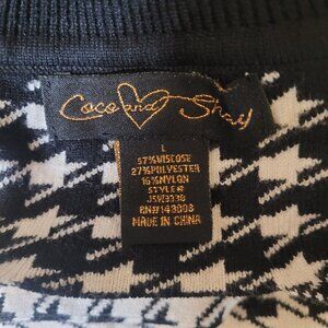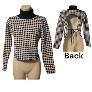 Coco and Shay Long Sleeve Open Back Turtleneck Sweater L Black White Houndstooth