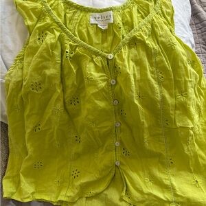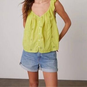 Coco cotten eyelet top Lime Green Sleeveless Button-Up Top