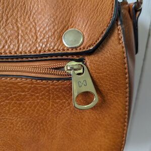 Coco + Carmen brown leather crossbody purse. Floral print front details. Magnetic closure. Inside zipper pocket and back zipper pocket. Good condition. Please see all the pictures.