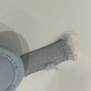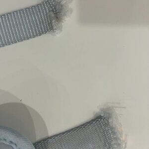 Used less than 3x but my dog bit through the body strap when he was home alone. Top straps are totally fine. If you see the pics you can see it was basically a straight tear and can easily be sewed back together with basic sewing skills. There is light dirt/dust marks on the harness that will easily be washed off when laundered - I didn't want to do so and risk tearing the strap more before it's repaired.