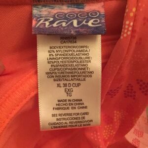 Coco Rave Sparkly Medallion Underwire Bralette Swim Top Coral XL 38 D Cup