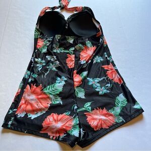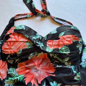 Coco Reef Women's One Piece Swim Suit Black/Green/Orange Floral Size 16