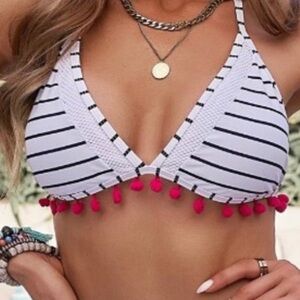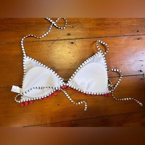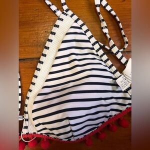 New with tags. Blue white stripe. Strong tie. Red Pom Pom. Excellent condition. Perfect swim top to pair with your favorite bottoms or shorts.