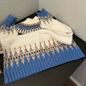 Cocobleu Fair Isle Cozy Knit Mock Turtleneck Pullover Sweater Size M