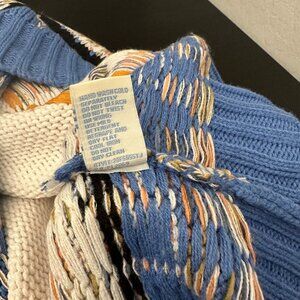 Beautiful knit mock neck sweater. 2nd and 3rd photo shows some space in the stitching in the center of the sweater that could be easily stitched closer together if you wanted to.