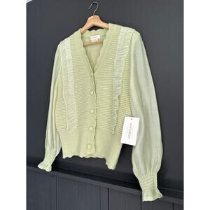 Cocobleu Sage Green Ruffle Knit Button Cardigan Sweater NEW Size Medium