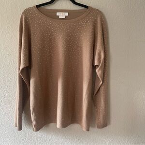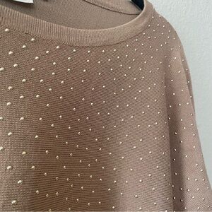 Cocobleu woman's brown rhinestone sweater top size XL brown pullover lightweight