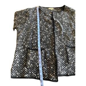 Cocogio Black Gray Herringbone Wool Open Front Knit Sweater Blazer Size XL