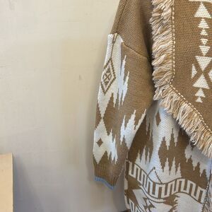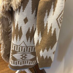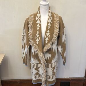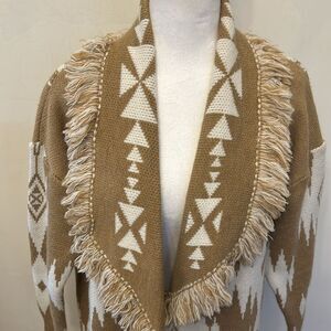 Cocogio Italian beige fringe Aztec design wool blend open cardigan Size S New