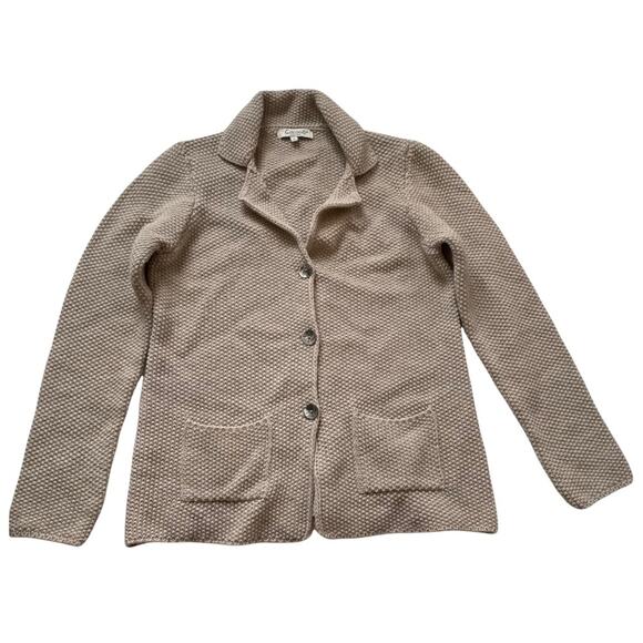 Cocogio Waffle Knit Cardigan Collared Pockets Wool Blend Oatmeal Tan M EUC