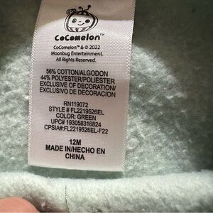 Cocomelon baby size 12 light green sweatshirt, good condition, smoke and pet free home