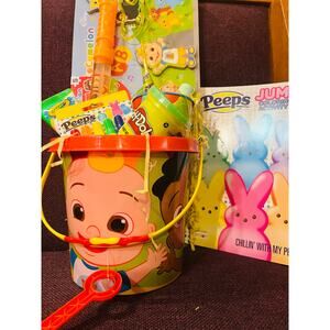 Cocomelon sand bucket Easter bundle, five piece wooden puzzle, Cocomelon, plastic cup , coloring book and markers, orange bubble wand, Crayola bathtub finger paint soap, Play-Doh, and Chalk . All items on you and ready to ship. Can add to bundle or do a modification.Thank you !